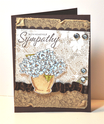 As a result, I've been frantically working on sympathy cards b/c I don't have alot of extra ones around - in fact, none, now that I've taken them to these 3 places! So, for the next few days, I'll be showing you some of the cards I've been making to fill that gap.